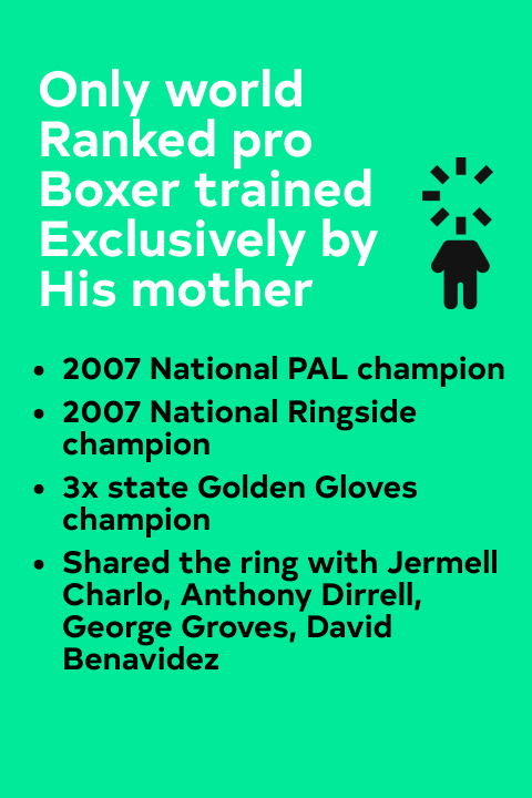 I am a professional boxer fighting out of Las Vegas, Nevada and the world's only ranked boxer trained exclusively by my mother, with a 23-7 (15 KOs) record.