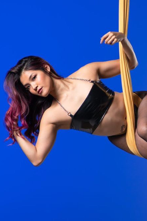 I am also an aerial instructor and love helping other new aerialists grow to achieve their goals by providing a space for people to express themselves in class.