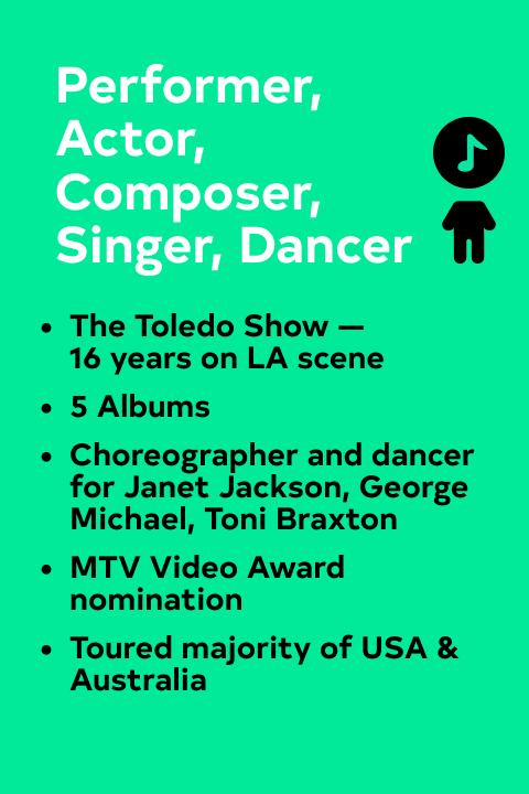My music career began in the then-underground poetry circuit of places like Max's Garage, and soon my performance took the life of its own and evolved into “The Toledo Show” - choreographed madness, the longest-running, most talked about show in Los Angeles.