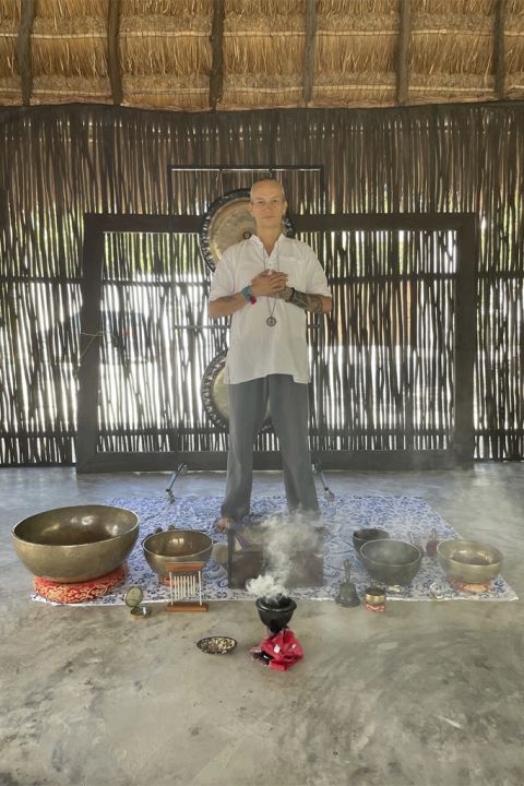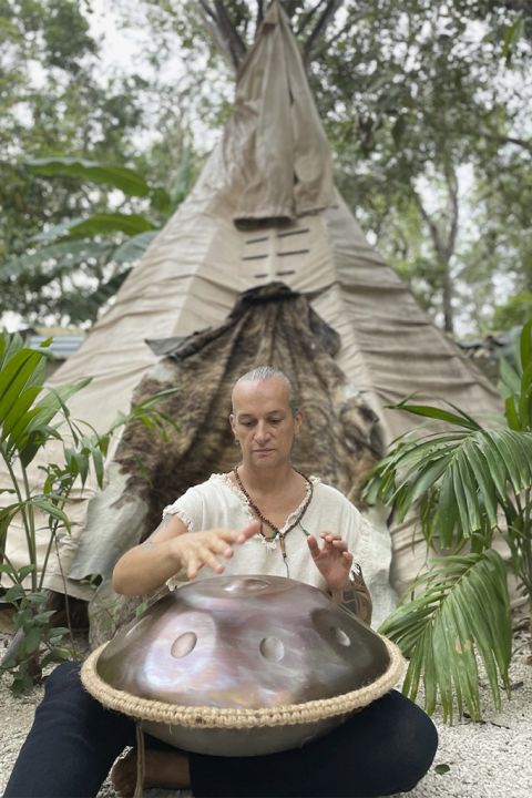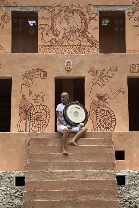 I am on a continuous path to develop myself as a sound healer with different ancestral instruments and as a “medicine man“ by learning from the Mayan traditions and local shamans, as a Fire carrier, Mayan Cosmovision, herbalism from the last 5 years of living in Riviera Maya.